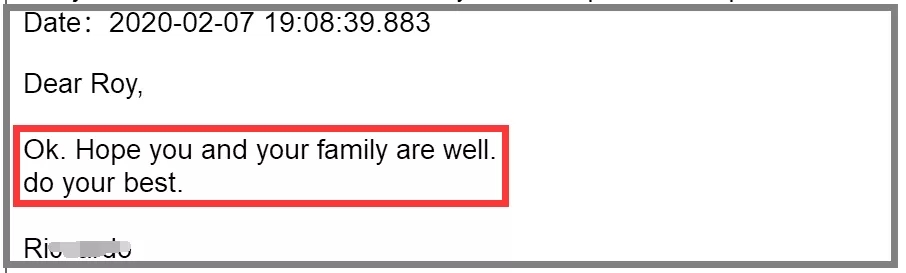 下面這封郵件是剛剛和客戶溝通的,相對應(yīng)地告知客戶17日的確沒法復(fù)工,可能還需要一周延遲。所以整個交貨期也順延一周,讓客戶提前做好準(zhǔn)備。