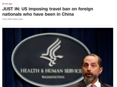 美國衛(wèi)生與公眾服務部部長阿萊克斯·阿扎(Alex Azar)宣布此次冠狀病毒爆發(fā)為公共衛(wèi)生緊急狀態(tài),他說,總統(tǒng)已經(jīng)對過去14天內(nèi)抵達中國的外國人實施了臨時入境禁令。