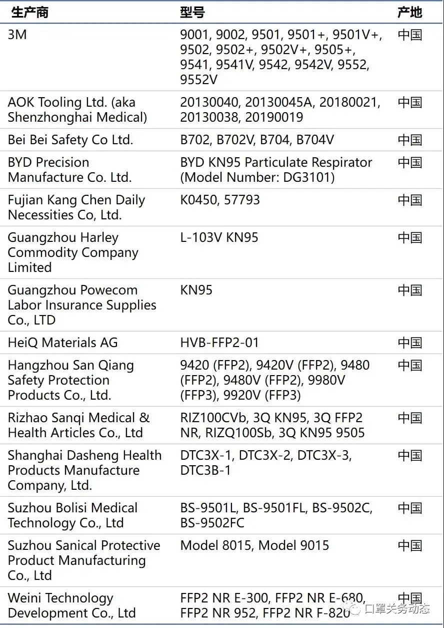 中國生產(chǎn)的符合以下準則之一的一次性非NIOSH批準的呼吸器,符合5月7日修訂的EUA授權: