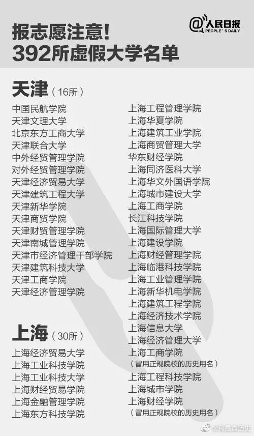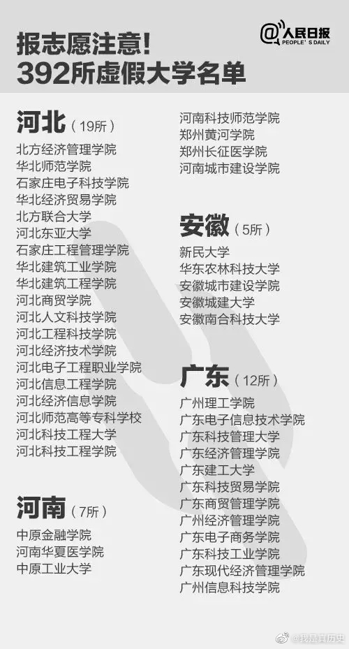 人民日報公布392所“虛假大學(xué)”名單如下: