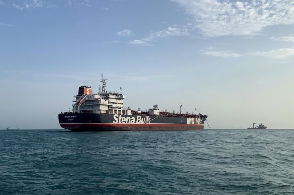 (這是7月21日在伊朗霍爾木茲海峽附近拍攝的“史丹納帝國(guó)”號(hào)油輪)
