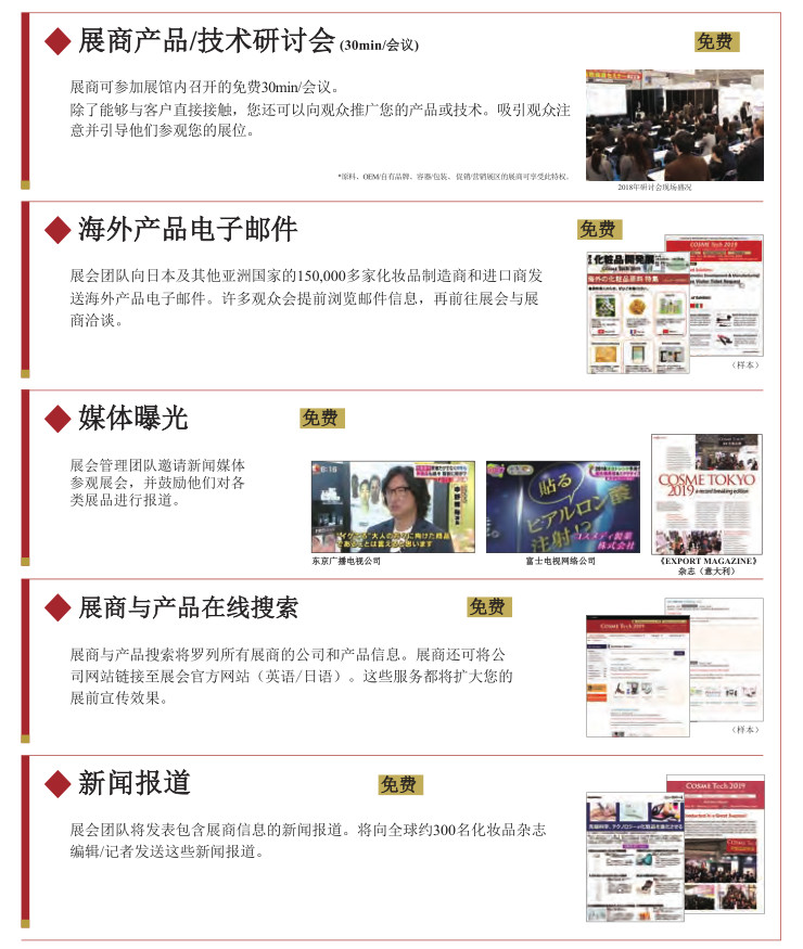 本次展會吸引了來自日本以及其它亞洲國家的專業(yè)觀眾參加包括:進(jìn)口商、分銷商、代理商、以及各類零售商(百貨公司、在線商店、藥店、大規(guī)模零售商、精品店、生活館)以及沙龍,SPA,酒店、診所等。