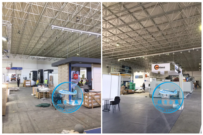 忙碌的一天從布展開始!葡萄牙石材展一共分為3個(gè)館,石材(含國際企業(yè))有兩個(gè)館,還有一個(gè)館為工具機(jī)械,展出面積達(dá)到16000+平方米。