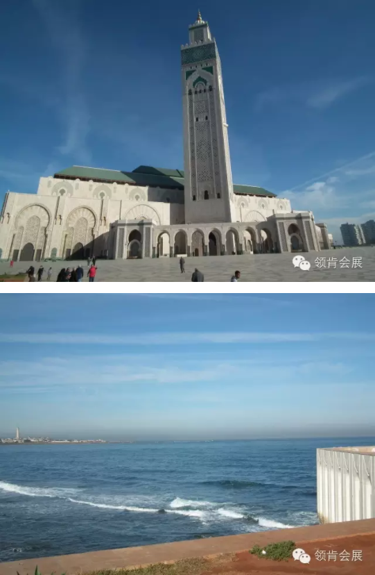 卡薩有全世界第二大清真寺之稱的Hassan II哈桑二世清真寺是這個(gè)白色城市的驕傲.據(jù)說(shuō)是世界上現(xiàn)代化程度最高的清真寺,被譽(yù)為穆斯林世界的一大“寶物”。展會(huì)結(jié)束后,導(dǎo)游帶我們參觀這個(gè)第二大清真寺,并沿著附近的海邊大道散散步、沐浴陽(yáng)光,吹著海風(fēng)….