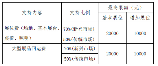 4、展位費(fèi)支持標(biāo)準(zhǔn)按每個(gè)企業(yè)申請(qǐng)一個(gè)基本展位(9 平方米,下同)計(jì)算,每個(gè)基本展位的展位費(fèi)、大型展品回運(yùn)費(fèi)支持上限均為 2 萬(wàn)元,每增加一個(gè)展位支持限額各增加 1萬(wàn)元。